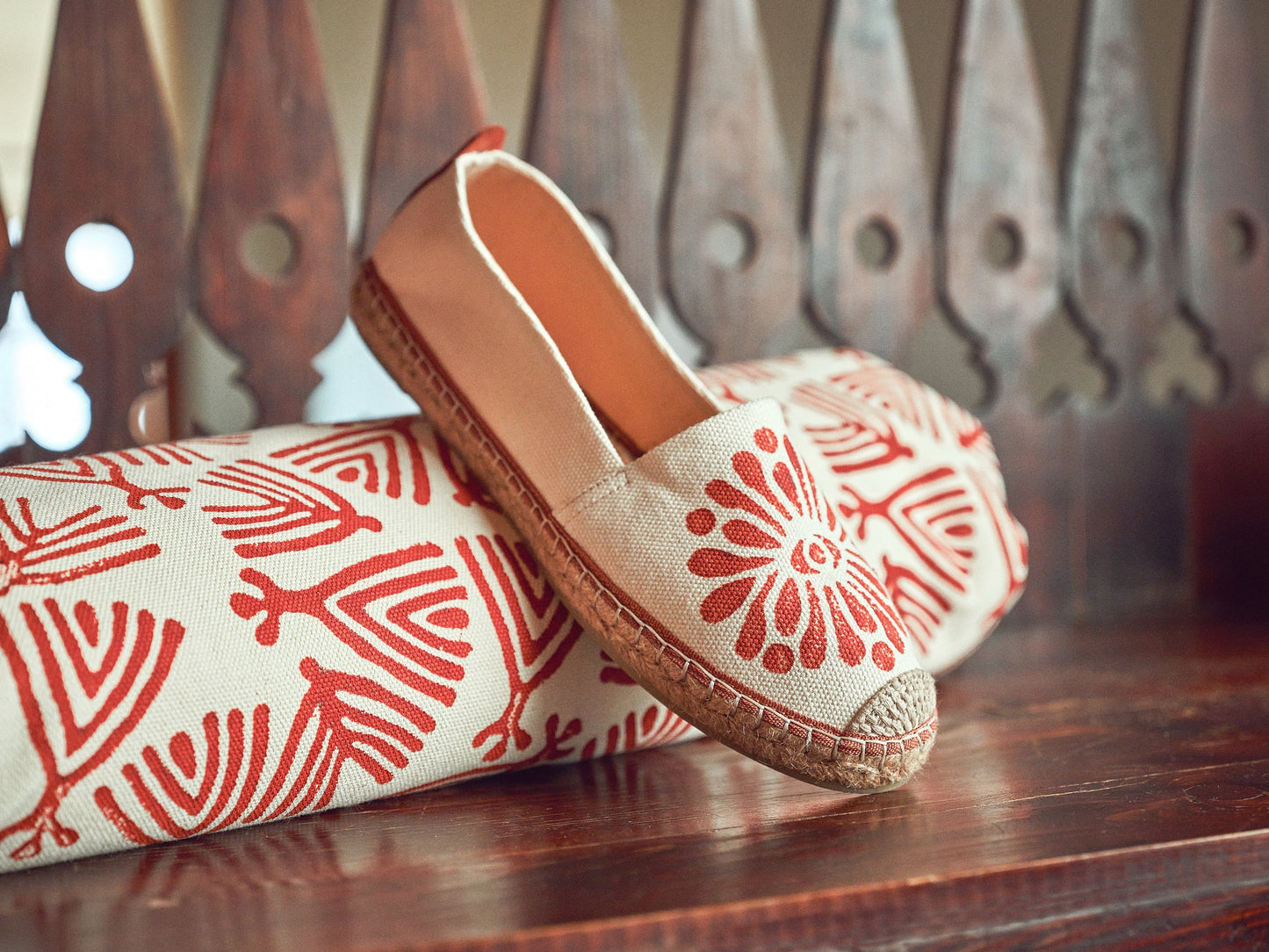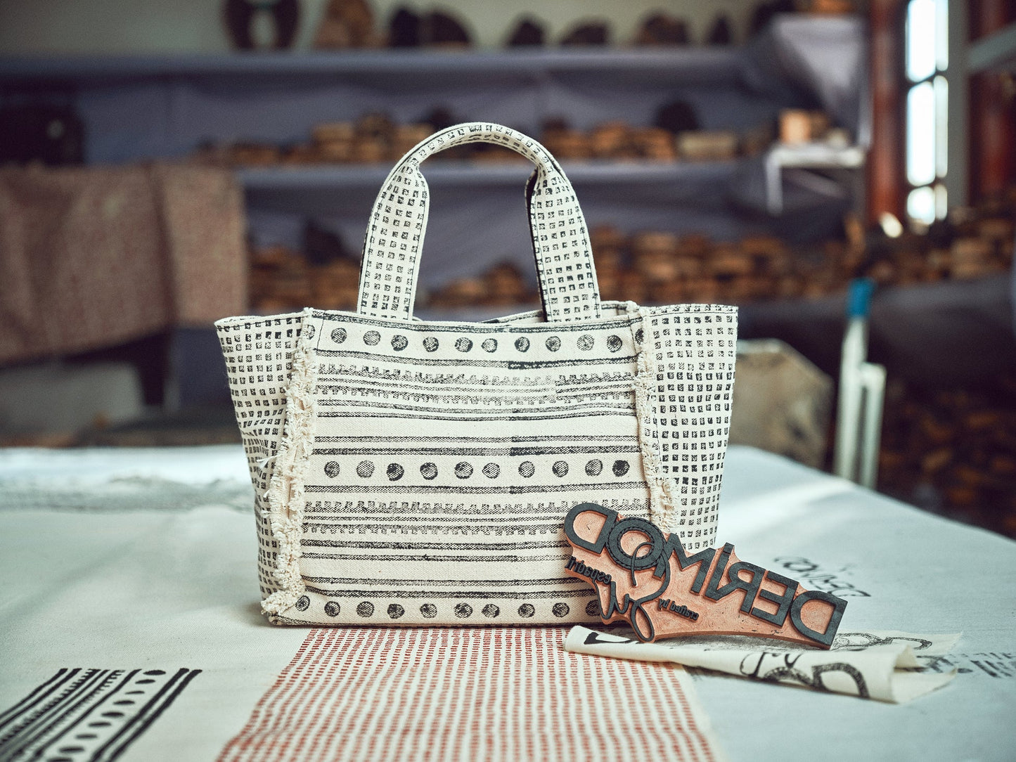İncelikle oyulan ıhlamur ağacı kalıplar özel hazırlanmış tek renk boyalarla şekilleniyor, espadril ve kanvas çantalara işlenerek geçmişin izlerini bugüne taşıyor.