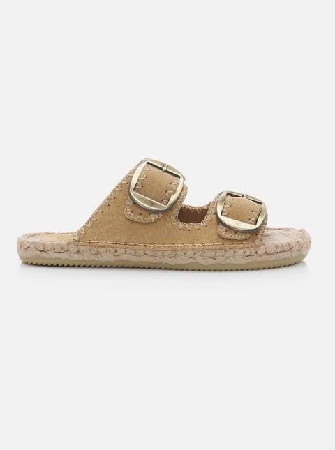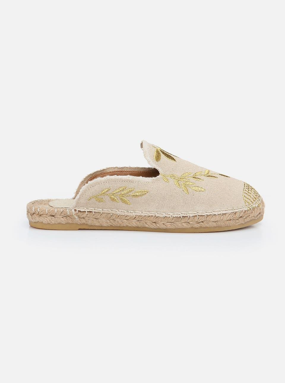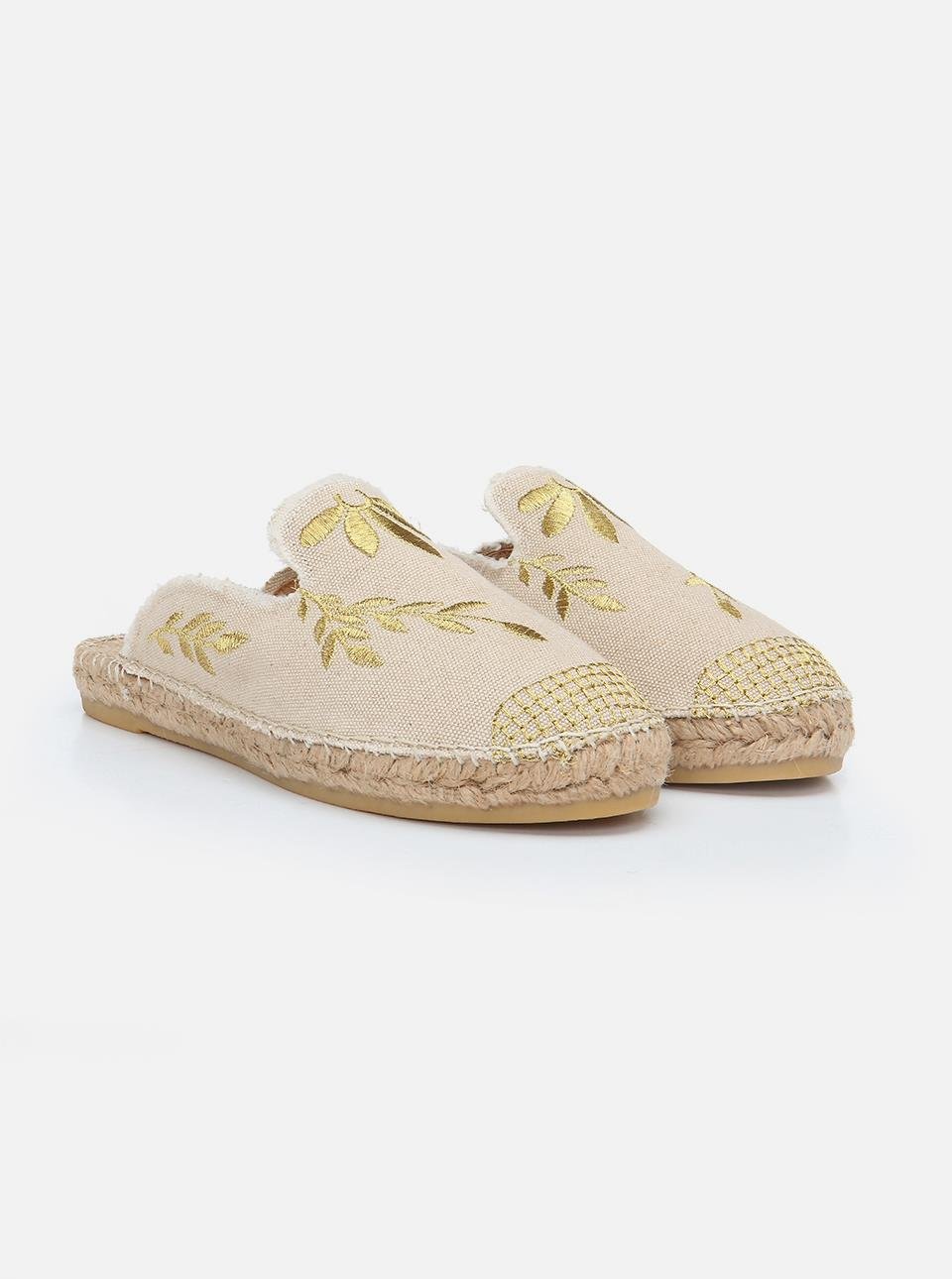 Marat Ekru Altın Nakışlı Espadril Terlik
