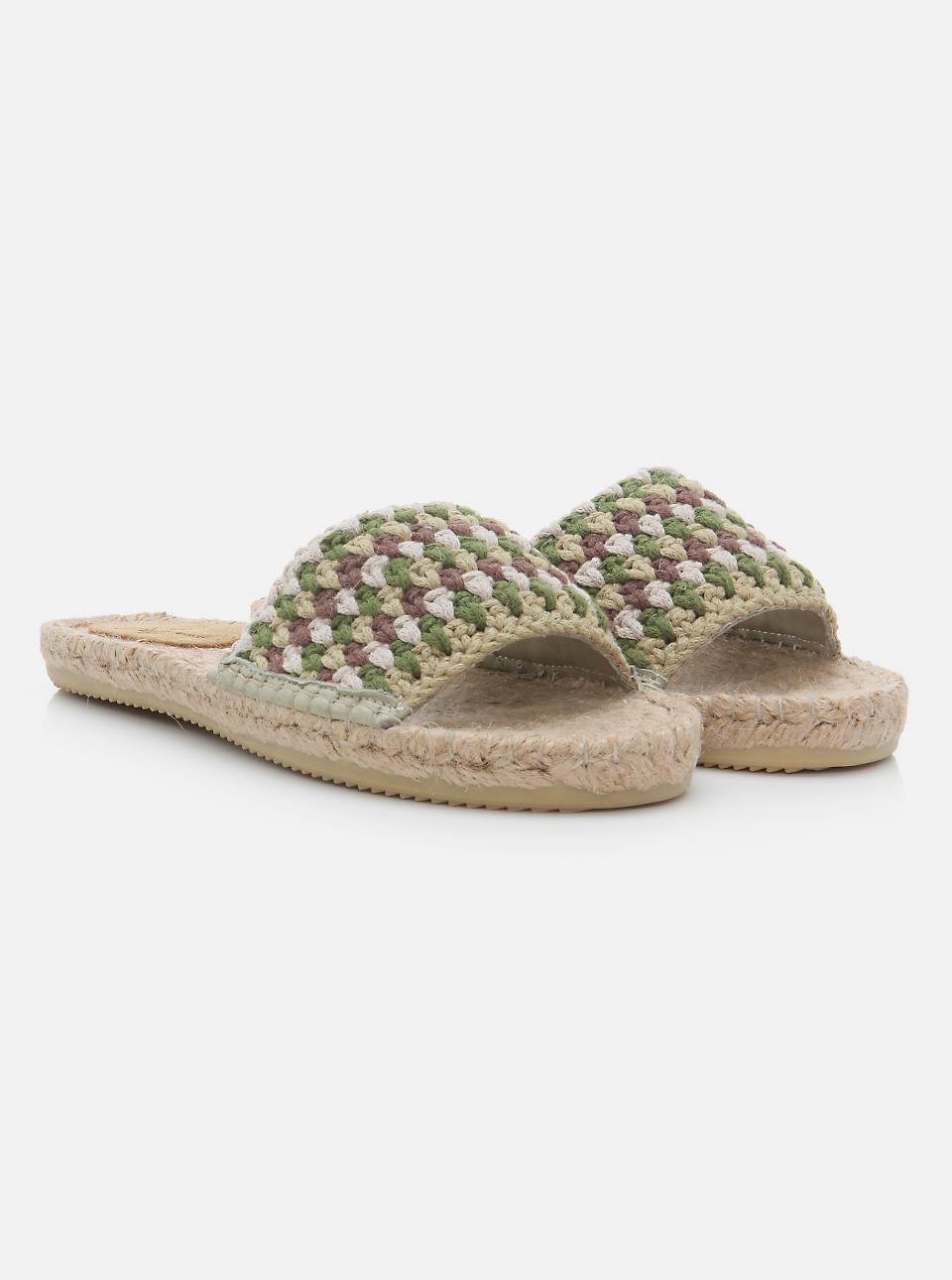 Jade Yeşil-Kahve Kadın Örgü Espadril Terlik