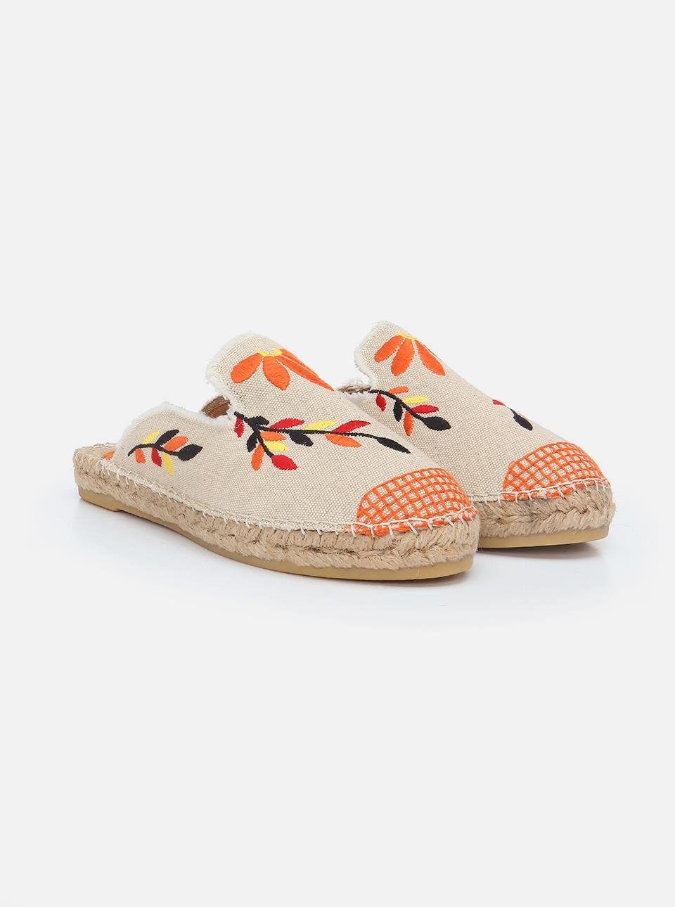 Marat Ekru Turuncu Nakışlı Espadril Terlik