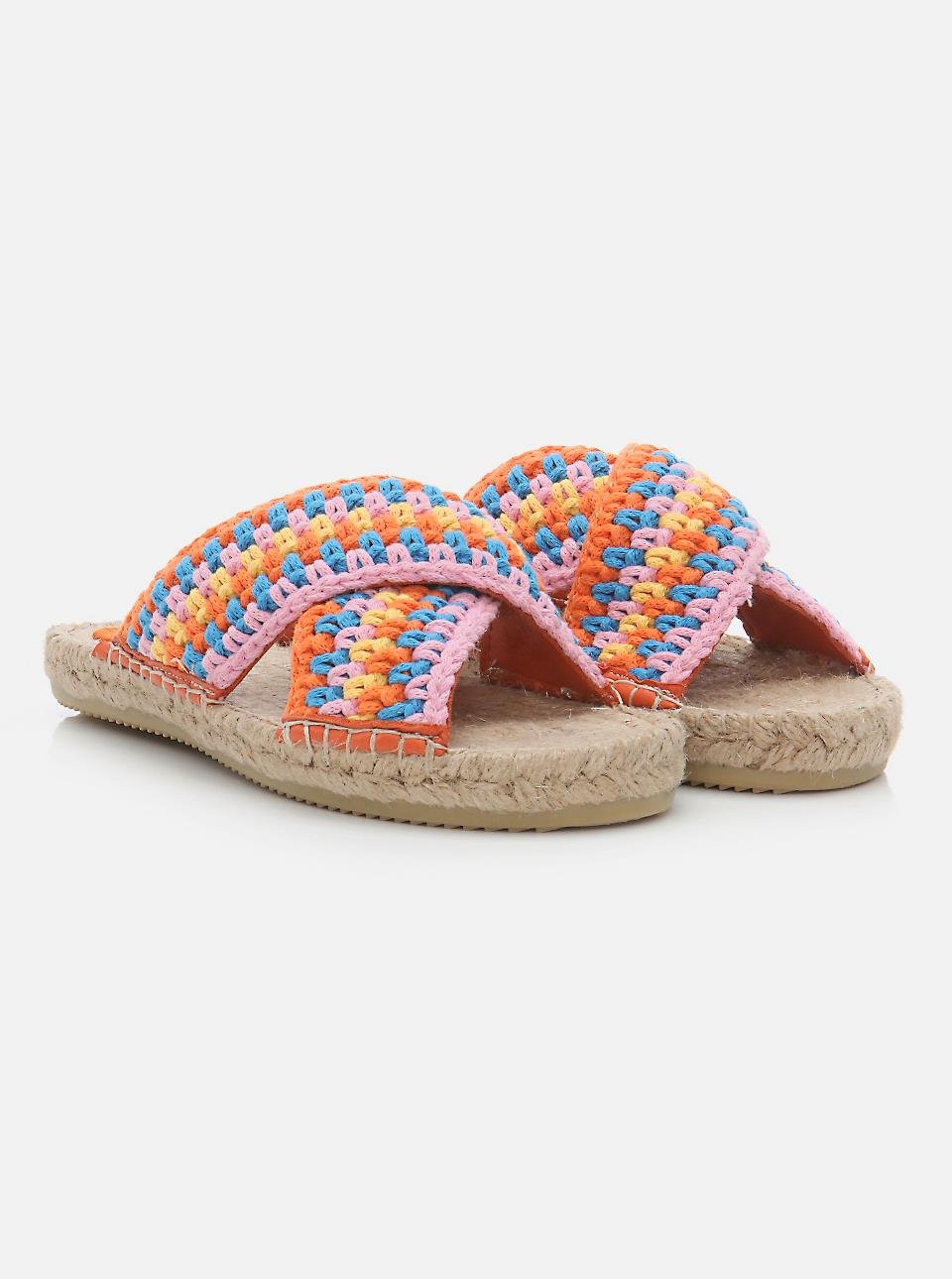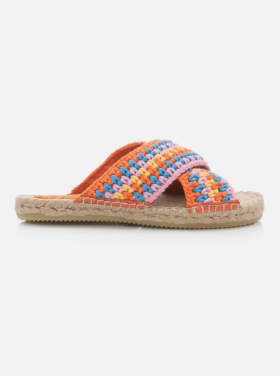 Kinsee Turuncu-Pembe Örgü Kadın Espadril Terlik