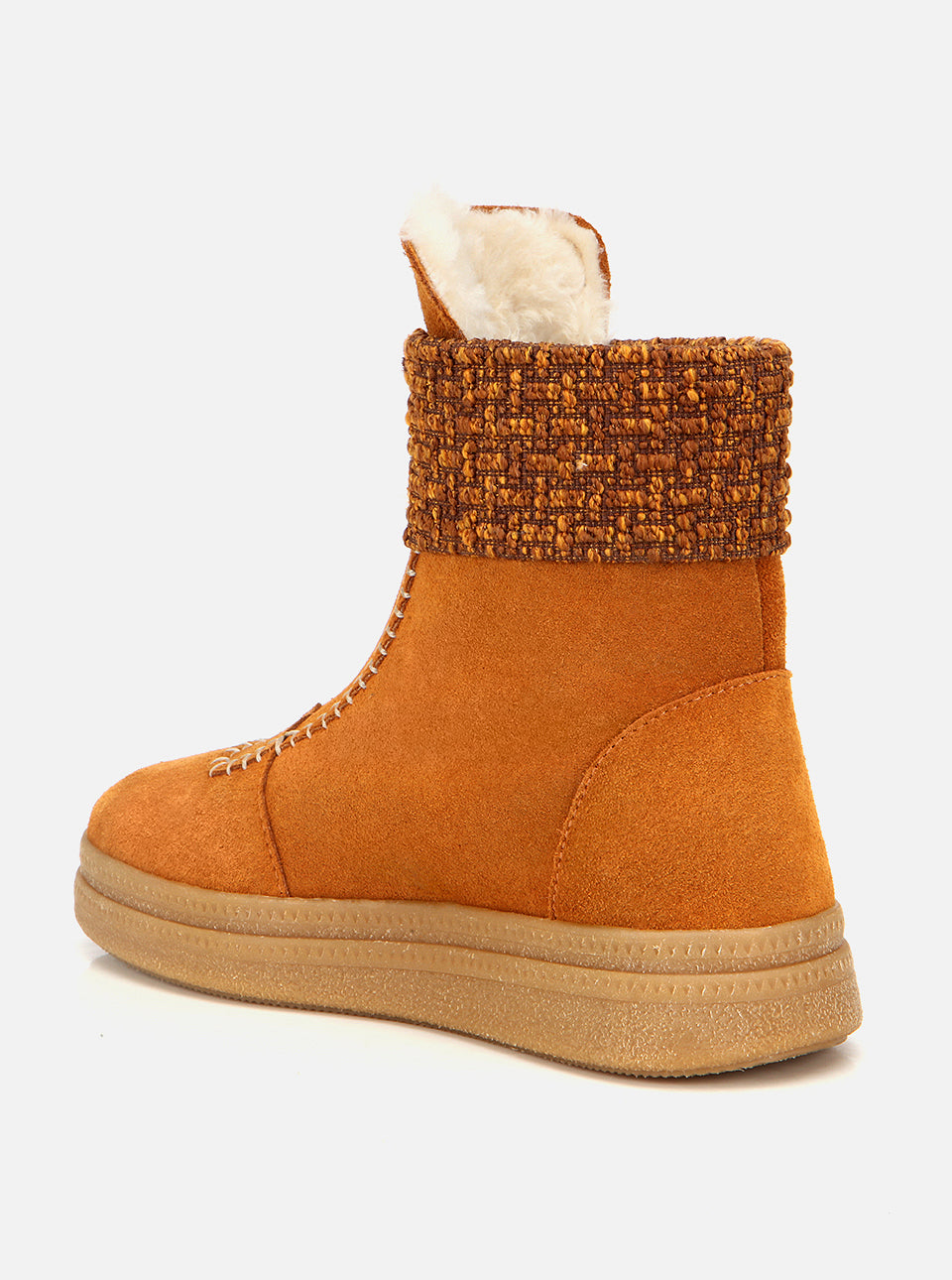 Şık tasarımı ve kışa uygun yapısıyla öne çıkan bu sıcak tutan kısa bot, yumuşak süet dokusu ve örgü detaylı bilek kısmıyla hem konfor hem stil sunar.