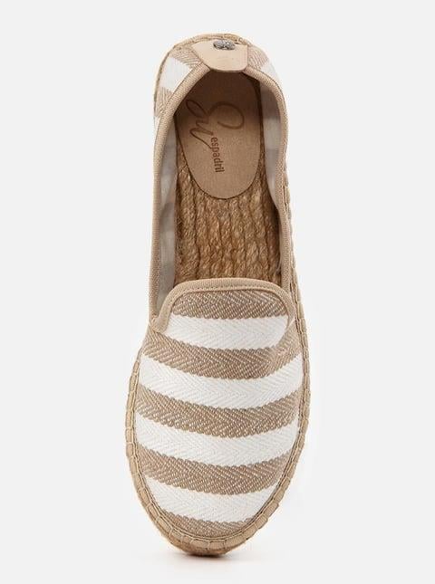 Denizci temasından vazgeçemeyenler için marine çizgili espadril modelimiz Bianca. Doğal keten ile kalın el örgüsü gerçek espadril tabanını birleştirdik. Kot şortlar, denim pantalonlar ve hatta mayonuzla şehirde ,tatilde, teknede rahatça giyebilirsiniz.