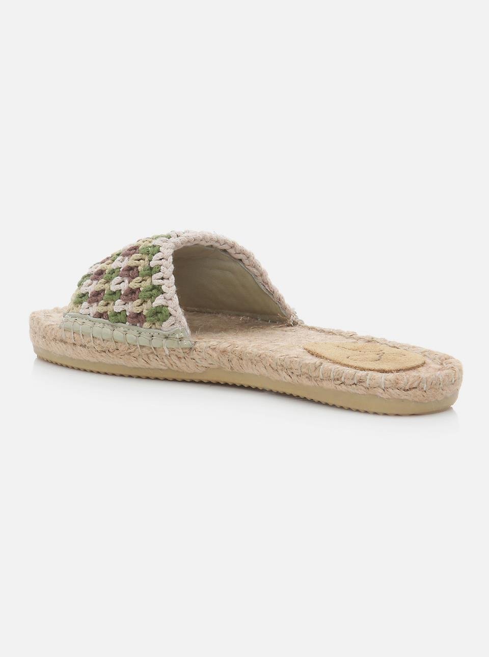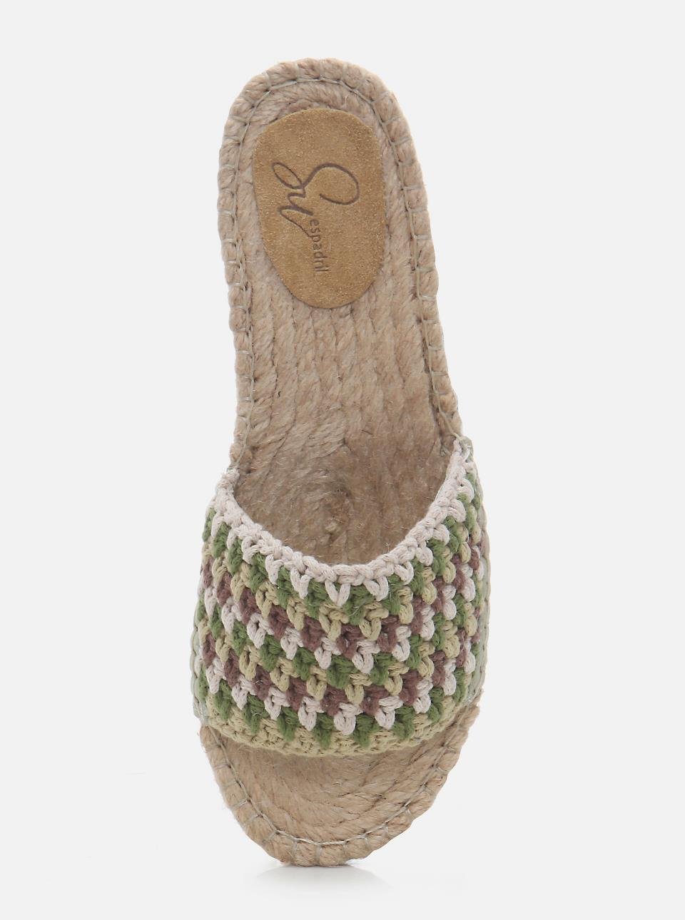Jade Yeşil-Kahve Kadın Örgü Espadril Terlik