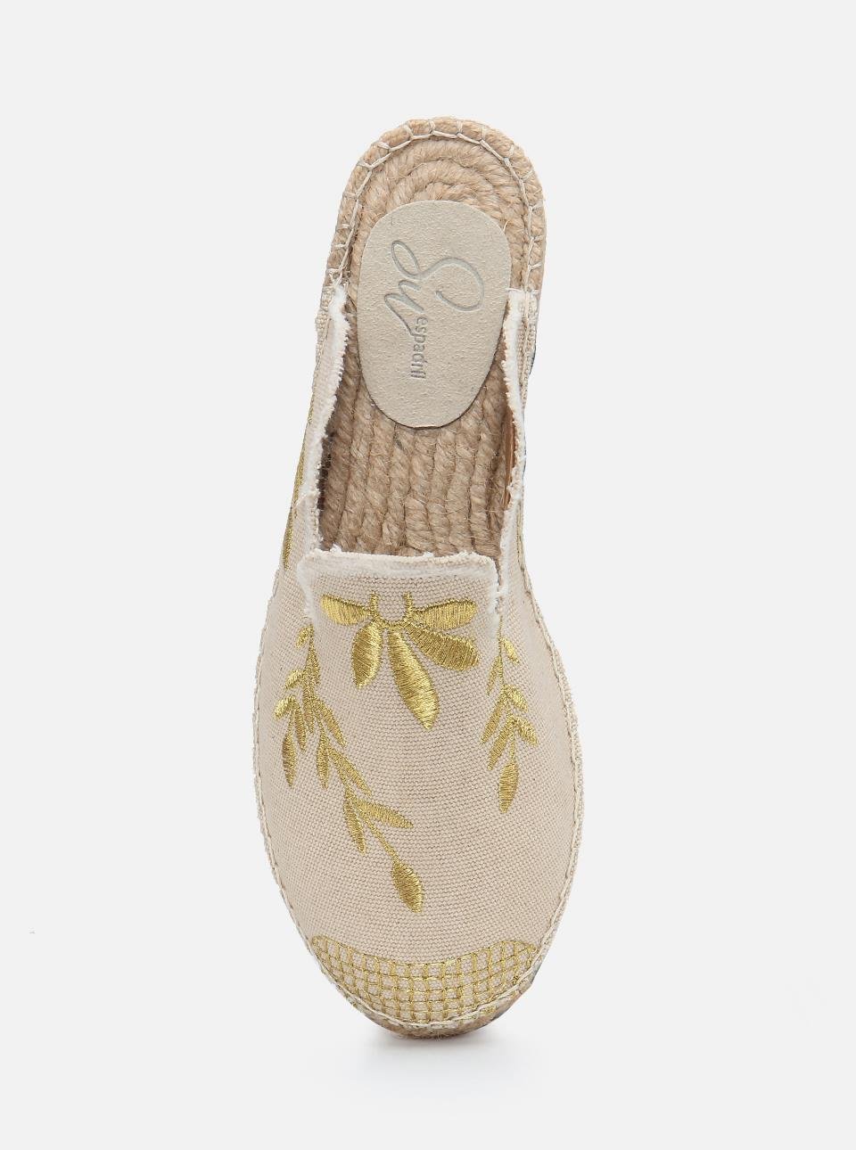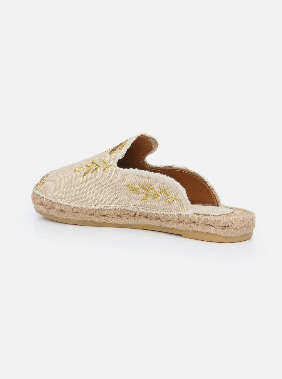 Marat Ekru Altın Nakışlı Espadril Terlik