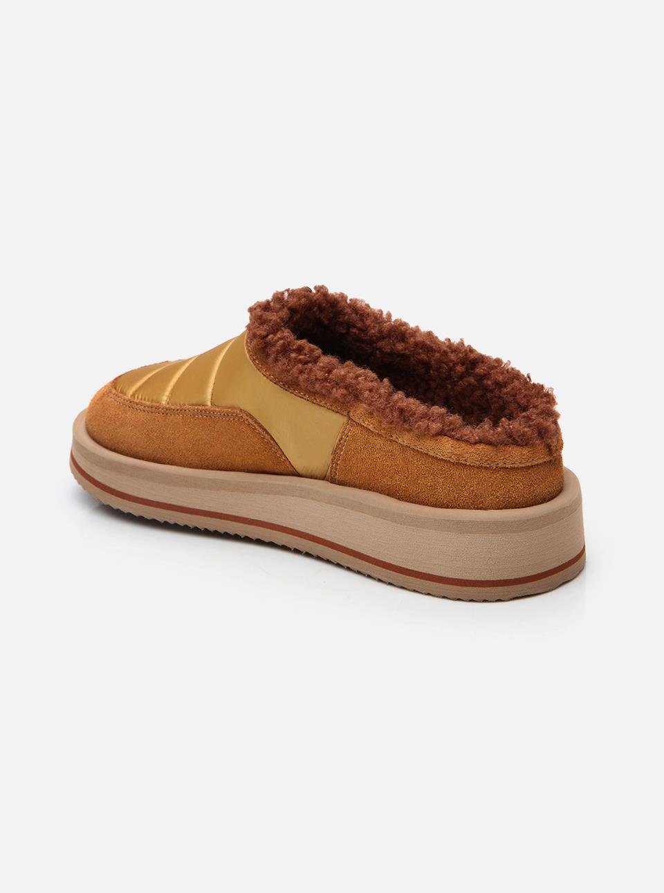 Su Sarı Kadın Kumaş-Süet Terlik